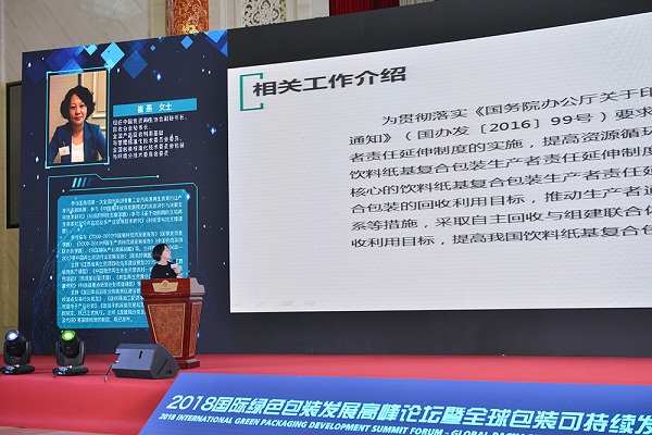 中國(guó)物資再生協(xié)會(huì)秘書長(zhǎng)崔燕女士發(fā)表題為《中國(guó)包裝循環(huán)利用分析》的主題演講。