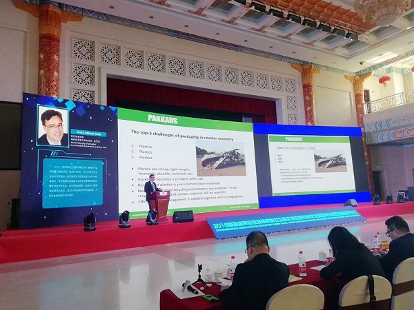 世界包裝組織副主席Antro Mikael Säilä,也是芬蘭國(guó)家包裝標(biāo)準(zhǔn)化委員會(huì)主席和斯堪的納維亞包裝協(xié)會(huì)主席,介紹了當(dāng)今循環(huán)經(jīng)濟(jì)中包裝所面臨的挑戰(zhàn)與機(jī)遇,介紹了歐盟關(guān)于循環(huán)經(jīng)濟(jì)包裝(ECP)的行動(dòng)計(jì)劃。