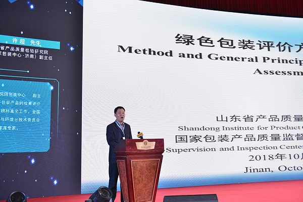 山東省產(chǎn)品質(zhì)量檢驗(yàn)研究院(國(guó)家包裝中心·濟(jì)南)副主任許超先生,進(jìn)行以“綠色包裝評(píng)價(jià)方法與準(zhǔn)則介紹”的主題演講,為大家介紹了綠色產(chǎn)品背景、綠色包裝國(guó)家標(biāo)準(zhǔn)的編制過程以及詳細(xì)內(nèi)容。
